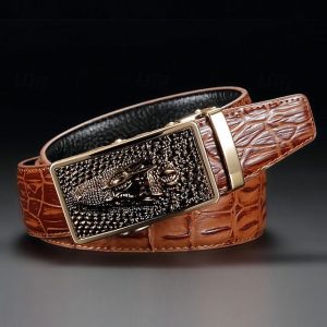 Men’s Crocodile Leather Belt – Luxury Animal Pattern Dress Belts for Business, Formal Events and Gifts #18982721