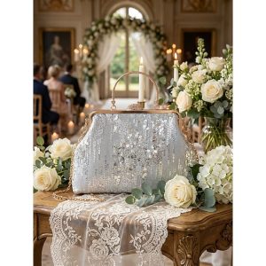 Women’s Ivory Sequin Top Handle Clutch with Chain Strap, Elegant Bridal Evening Bag, Ideal for Wedding, Engagement & Formal Events #13320916