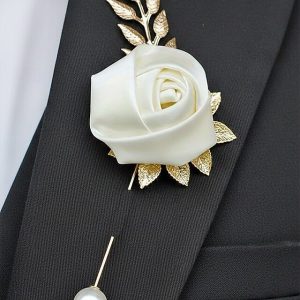 Men’s Polyester Rose Lapel Pin – Multiple Colors – Elegant Wedding & Party Accessory with Pearl Detailing #17408811