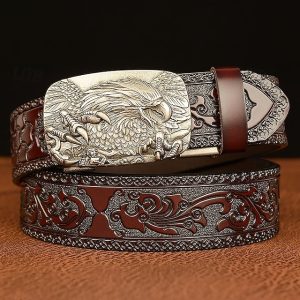 Men’s Vintage Leather Belt with Eagle Embossed Buckle – Western Style Adjustable Belt for Casual and Formal Wear #17883343
