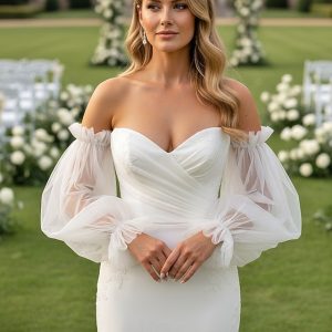 Women’s Tulle Puff Sleeves Gloves– Black and White Colors, Soft and Elegant Mesh Material, Perfect for Weddings, Parties and Evening Events #10814545
