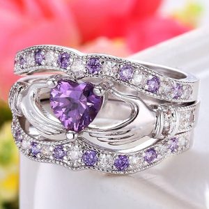 Women’s 3-in-1 Heart-Shaped Amethyst Ring Set, Alloy Material, Multiple Colors, Elegant Design for Weddings, Valentine’s Day and Parties #18752341