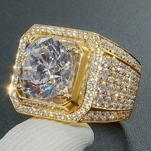 Men’s Gold/Silver Plated Alloy Ring with Large Square Cubic Zirconia, Paved with Small Diamonds, Perfect for Valentine’s Day, Weddings and Gift-Giving #19163805