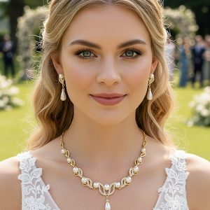 Women’s Alloy Imitation Pearl Necklace & Earrings Set, Gold & Silver Colors, Elegant Design with Crystal Accents, Perfect for Weddings & Formal Dinner Events #11592948