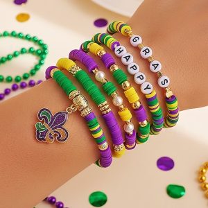 Women’s Acrylic Bracelet Set, Multi-Pattern Design, Mardi Gras Theme, Perfect for Carnival and Festivities #10148140