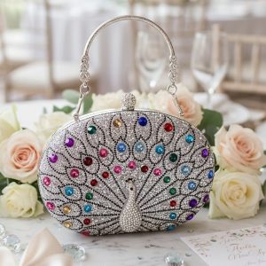Women’s Peacock Crystal Beaded Clutch, Statement Luxury Evening Bag for Wedding, Gala and Formal Parties #14089465