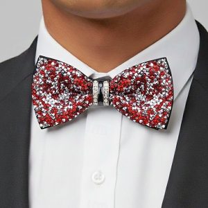 Men’s Polyester Glitter Bow Tie with Crystal Detailing, Available in Multiple Colors, Perfect for Weddings and Evening Events #19572352