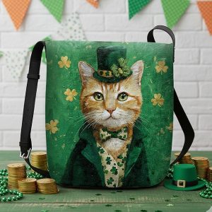 Women’s St. Patrick’s Day Crossbody Bag, Velvet Polyester with Cat and Shamrock Print, Multiple Designs, Perfect for Holiday Celebrations and Everyday Wear #16307127