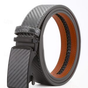 Men’s Carbon Fiber Pattern Faux Leather Belt, Adjustable with Multiple Color Options, Perfect for Weddings and Gifting #12812271