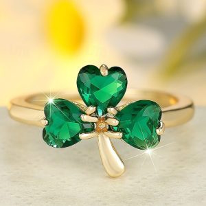 Women’s St. Patrick’s Day Shamrock Clover Ring, Copper Material, Elegant Lucky Irish Style Jewelry for Ladies, Perfect for Holiday Celebrations, Parades, Parties & Festive Wear #14496535