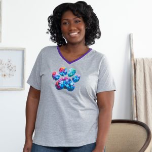 Rainbow Bubble Joy Paw Contrast V-Neck Tee
