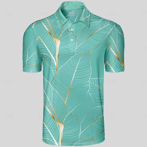 Men’s Golf Polo Shirt Green Short Sleeve Top Golf Attire Clothes Outfits Wear Apparel #12288226