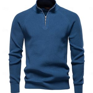 Men’s Sweater Dark Khaki Denim Blue Apricot Long Sleeve Top Golf Attire Clothes Outfits Wear Apparel #15279492