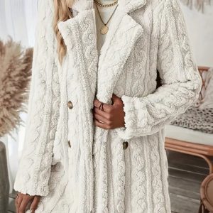 Women’s Fleece Jacket Teddy Coat Warm Breathable Pocket Fleece Lined Casual Plain Vacation Street Casual Daily Wear Double Breasted Long Notch Lapel Regular Fit Long Sleeve Outerwear Black White Pink #19318728