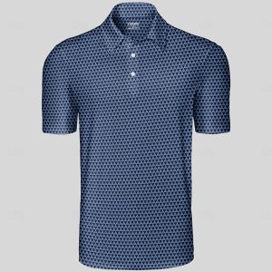 Men’s Golf Polo Shirt Dark Blue Short Sleeve Top Golf Attire Clothes Outfits Wear Apparel #12453827