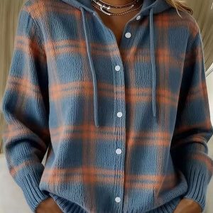 Women’s Sweater Cardigan Elegant Streetwear Daily Solid Color Floral Graphic Hooded Buttons Knitted Print Long Sleeve Regular Tops Knit Daily Home Outdoor Blue White Fall Winter #15608089