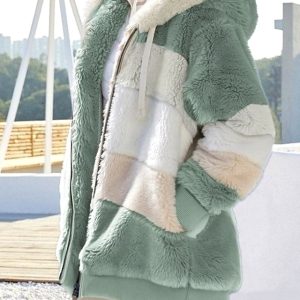 Women’s Sherpa Jacket Comfortable Breathable Patchwork Zipper Casual Color Block Vacation Street Casual Daily Wear Zipper Regular Hooded Regular Fit Long Sleeve Outerwear Black Red Blue Spring Fall #14115882