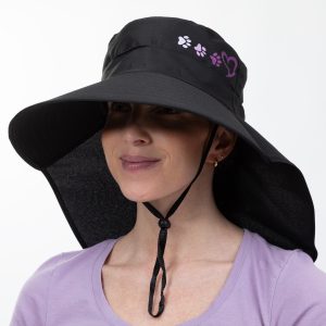 Paw Print UPF 50+ Waterproof Ponytail Sun Hat with Neck Flap