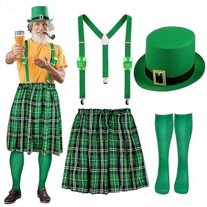 St. Patrick 2026 Leprechaun Shamrock Irish Carnival Fancy Costume Kilts Y-Back Suspenders Novelty Funny Adults’ Men’s Saint Patrick’s Day Casual Party Easy Carnival Costume Dress Up #17726471