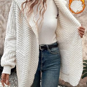 Women’s Casual Jacket Warm Comfortable Adjustable Fashion Solid Color Casual Daily Open Front Regular Turndown Regular Fit Long Sleeve Outerwear White Fall Winter #19276358