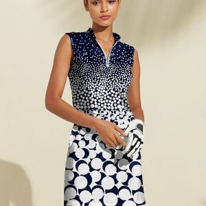 Women’s Golf Dress Dark Blue Sleeveless Ladies Golf Attire Clothes Outfits Wear Apparel #19806886
