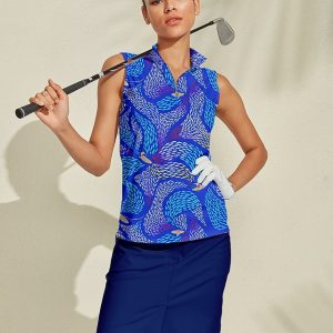 Women’s Golf Polo Shirt Cobalt Blue Sleeveless Top Ladies Golf Attire Clothes Outfits Wear Apparel #10103195