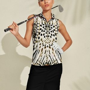 Women’s Golf Polo Shirt Khaki Sleeveless Top Ladies Golf Attire Clothes Outfits Wear Apparel #12772898