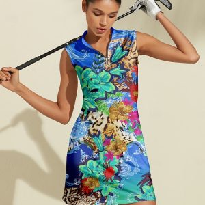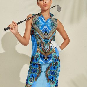 Women’s Golf Dress Blue Sleeveless Ladies Golf Attire Clothes Outfits Wear Apparel #14078818