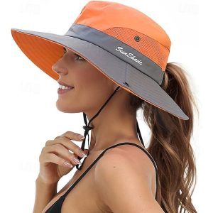 Sunshade Hat UV Protection Wide Brim Beach Cap Foldable Ponytail Bucket Fishing Hat Beach Cap for Fishing Hiking Gardening Outdoor #11149638