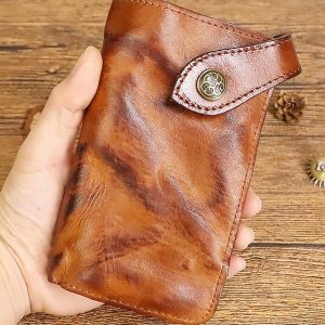 Men’s Genuine Leather Long Wallet, Large Capacity Vintage Bifold Card Holder, Multi-Color Retro Style, Slim Portable Design for Daily Carry, Travel, Business & Casual Use #14323818
