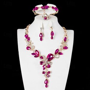 Jewelry Set 4pcs Glass Alloy Rings Earrings Necklace Bracelets Women’s Elegant Vintage Stylish Geometrical Geometric Jewelry Set For Wedding Party Wedding Guest #10612278
