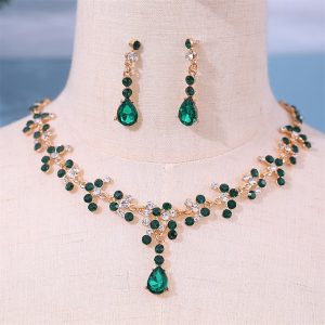 Jewelry Set Two-piece Suit Green Rhinestone Alloy 1 Necklace Earrings Women’s Elegant Vintage Fashion Vintage Style Classic Jewelry Set For Wedding Party Valentine’s Day #12969841