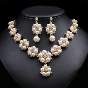 Bridal Jewelry Sets 1 set Imitation Pearl Alloy Earrings Necklace Bracelets Women’s Elegant Jewelry Set For Wedding Party Special Occasion #19366820