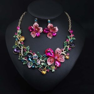 Fall Wedding Bridal Jewelry Sets Two-piece Suit Cubic Zirconia Rhinestone Alloy 1 Necklace Earrings Women’s Statement European Classic Flower Shape irregular Jewelry Set For Party Wedding #8834565