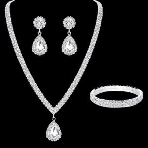 Bridal Jewelry Sets Three-piece Suit Imitation Diamond 1 Necklace 1 Bracelet Earrings Women’s Classic Sweet Lovely Classic Love Precious Diamond Water Drop Jewelry Set For Wedding Gift #9943522