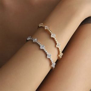 Zircon Classic Retro Flower Shape Elegant Fashion Personalized Simple Trendy Chrome Bracelet Jewelry Silver / Golden For Wedding Party Engagement Prom #15740145