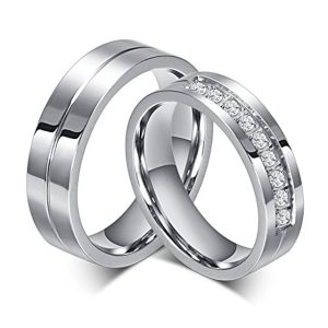 couple rings for him and her stainless steel matching promise ring princess cut bridal wedding engagement band cubic zirconia cz ring for women men love bridal jewelry girls gifts #8424775