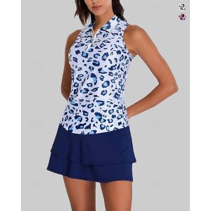 Women’s Graphic Leopard Sport Shirt Golf Polo Shirt Tennis Shirt Sleeveless Zipper High Elasticity Moisture Wicking Breathable Tennis Golf Pickleball Turndown Zip Collar Shirt Top White Pink Blue #14613100