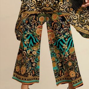 Vacation Vintage Totem Leopard Pattern Chiffon Wide Leg Pants #18272334