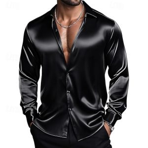 Men’s Shirt Satin Shirt Dress Shirt Casual Shirt Button Up Shirt Plain Formal Wedding Light Blue Black White Wine Long Sleeve Lapel Spring & Fall All Seasons Clothing Apparel #19829064