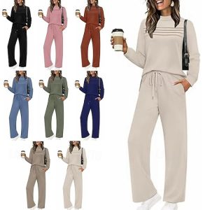 Women’s Tracksuit Pants Sets Long Sleeve Crew Neck Plain Lace up Fashion Streetwear Daily Casual Daily Blue Black Pink Spring Regular Fit #13131142