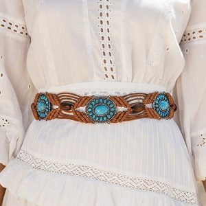 Women’s Bohemian Wax Cord Belt with Turquoise Stone Accents, Adjustable Braided Waist Belt, Multi-Color Vintage Style Accessory for Women, Perfect for Daily Casual, Vacation, Beach & Resort Wear #17275824