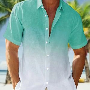 Men’s Shirt Summer Shirt Beach Wear Casual Shirt Button Up Shirt Untucked Shirts Pink Navy Blue Blue Orange Green Short Sleeve Gradient Lapel Vacation Casual Clothing Apparel Fashion Comfortable #9555980