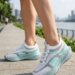 Women’s Blue Knit Running Shoes with Cushioned Sole – Breathable Lightweight Outdoor Sneakers for Jogging, City Walking, Fitness Training & Everyday Casual Wear #13537994