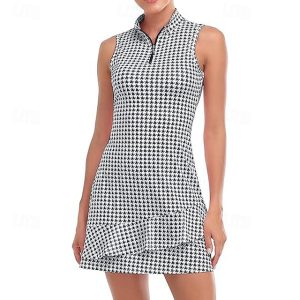Women’s Graphic Solid Colored Tennis Dress Sport Dress Moisture Wicking Breathable Tennis Athletic Running Zip Collar Dress Black White+Black White Tennis Clothing #17092805