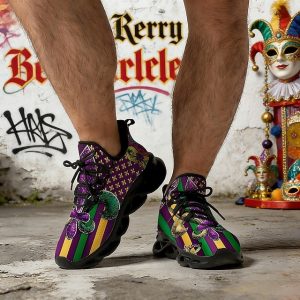 Men’s Mardi Gras Color Athletic Sneakers, Shock-Absorbing Lightweight Running Shoes for Carnival Events, Parades, Outdoor Walking, Travel and Casual Sportswear #18188385