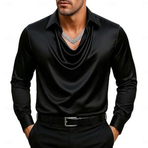 Men’s Shirt Silk Like Satin Shirt Casual Shirt Plain Formal Wedding Silver Black Gold Green Long Sleeve Lapel Spring & Fall All Seasons Clothing Apparel Ruched #11947368