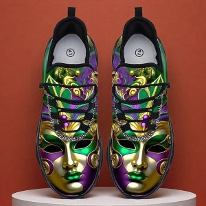 Men’s Mardi Gras Vibrant Carnival Sneakers with Mask and Confetti Design – Bright, Comfortable Footwear for Parades, Parties and Festivals #12053621