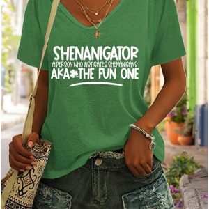 St. Patrick Women’s T Shirt Graphic Shamrock Vintage Stylish Classic Short Sleeve V Neck Regular Tops Daily Print Blue Black White Green Gray Summer Spring #16237923