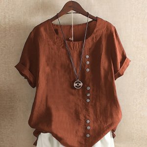 Women’s 100% Cotton Shirt Patchwork Casual Daily Weekend Solid Casual Linen Like Short Sleeve Crew Neck Round Neck White Summer Spring #9175994
